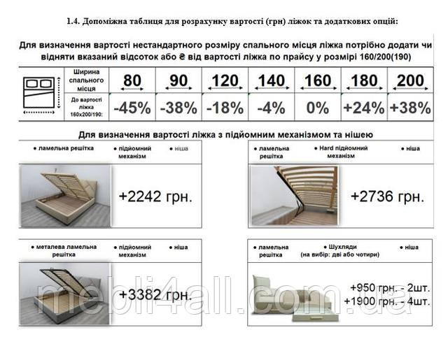 Ціна вказана за ліжко у 5 категорії тканини, без підйомного механізму.