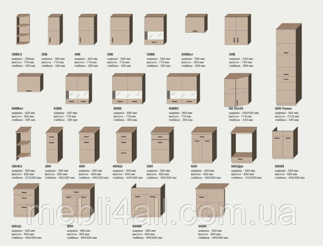 Ціна вказана за кухню Аліна без стільниці за 1 пог.м