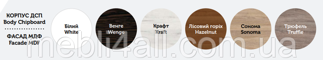 Колір МДФ ― дуб сонома, крафт, лісовий горіх, венге, трюфель, білий